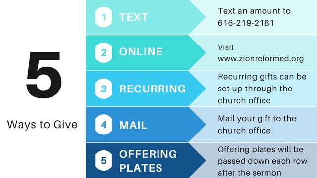 For more information, Contact Connie Stegman at cstegeman@zionreformed.org with further questions.